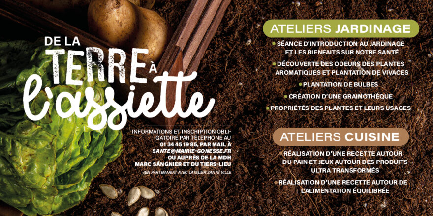 Informations et inscription obligatoire par téléphone au 01 34 45 19 85, par mail à sante@mairie-gonesse.fr ou auprès de la MDH Marc Sangnier et du Tiers-Lieu “Le Télégraff“.