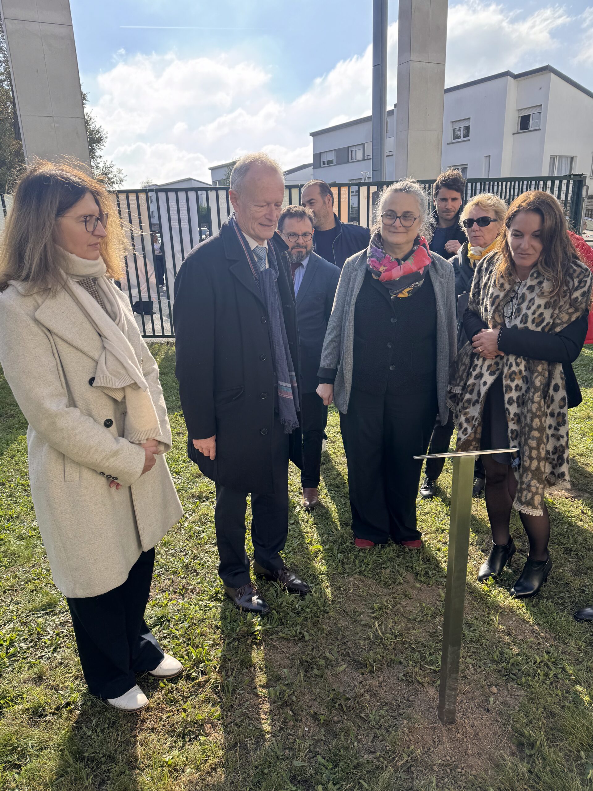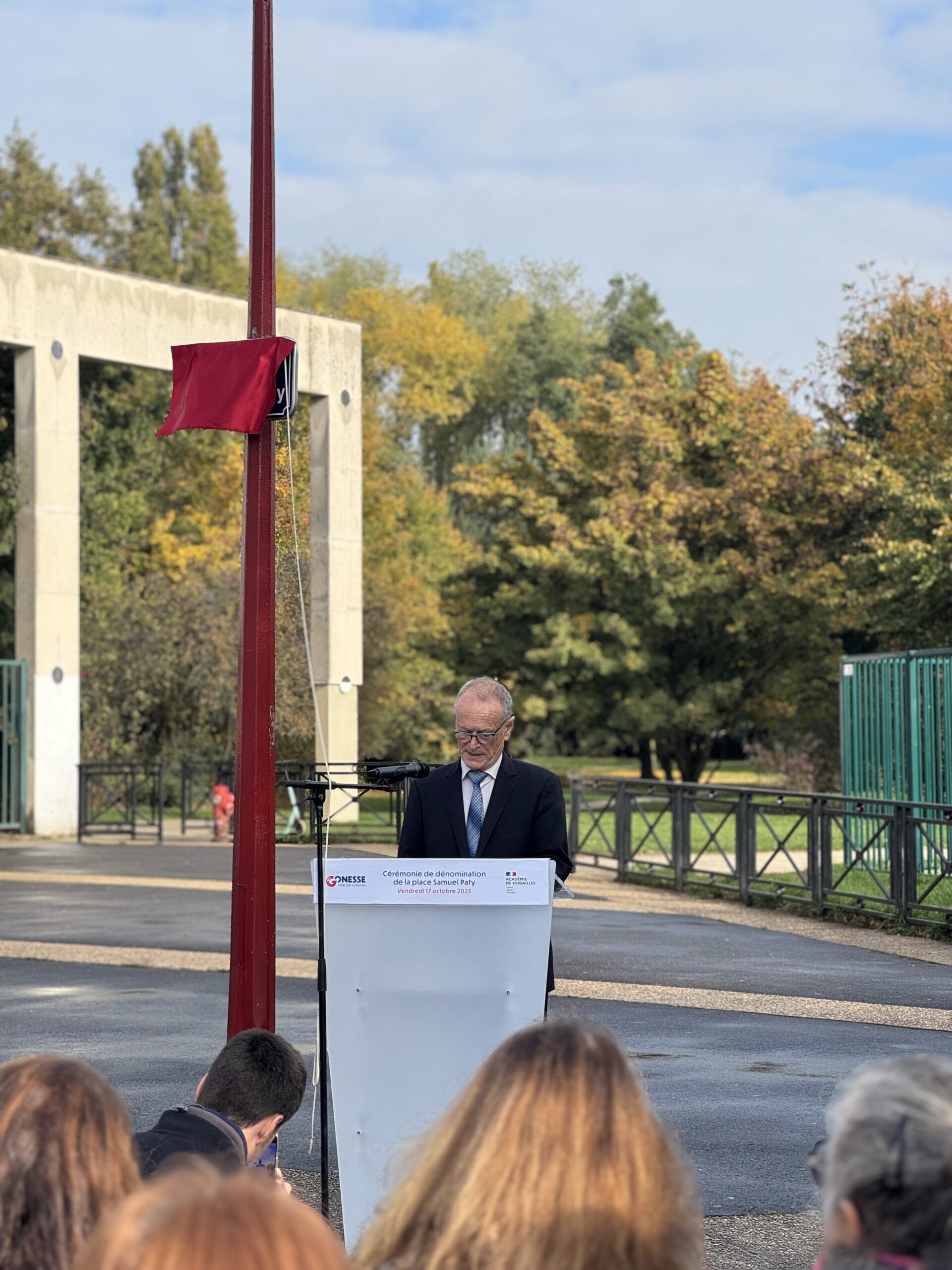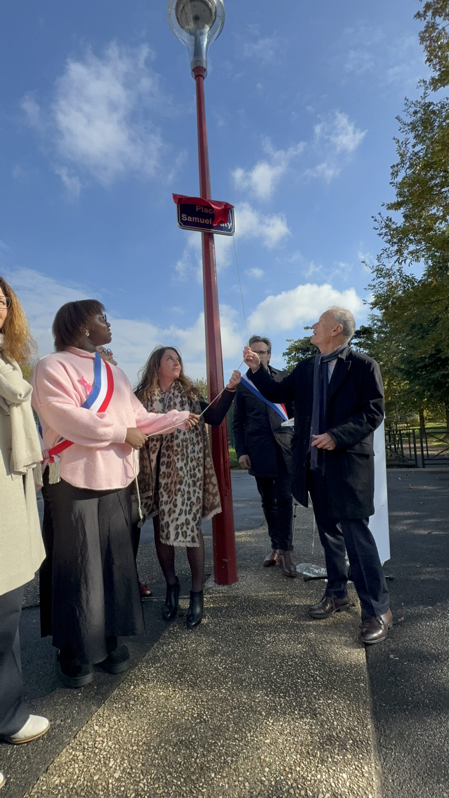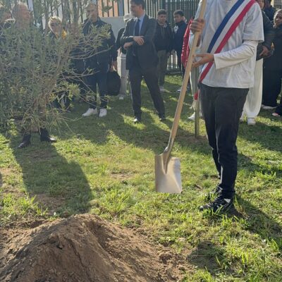 Lors de cette cérémonie empreinte de recueillement, un olivier de la paix a été planté et une plaque commémorative en bronze dévoilée à sa base. Aux côtés du maire Jean-Pierre Blazy, étaient présents Mickaëlle Paty, sœur de Samuel Paty, le député Arnaud Le Gall, Laura Fouchard, inspectrice de l’Éducation nationale, ainsi que les équipes éducatives et les élus municipaux.