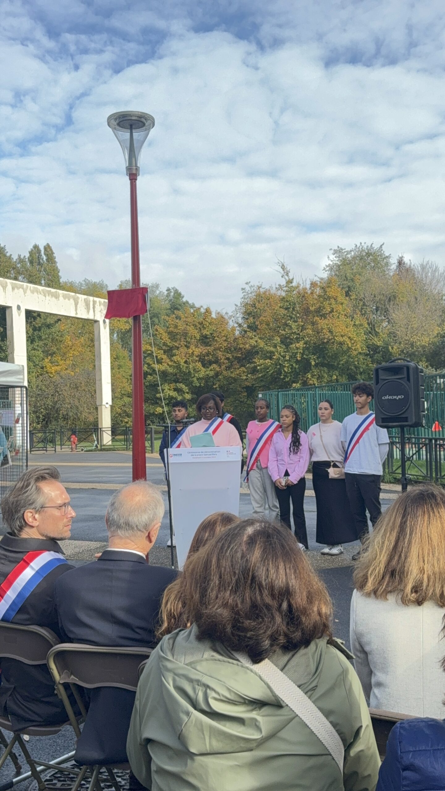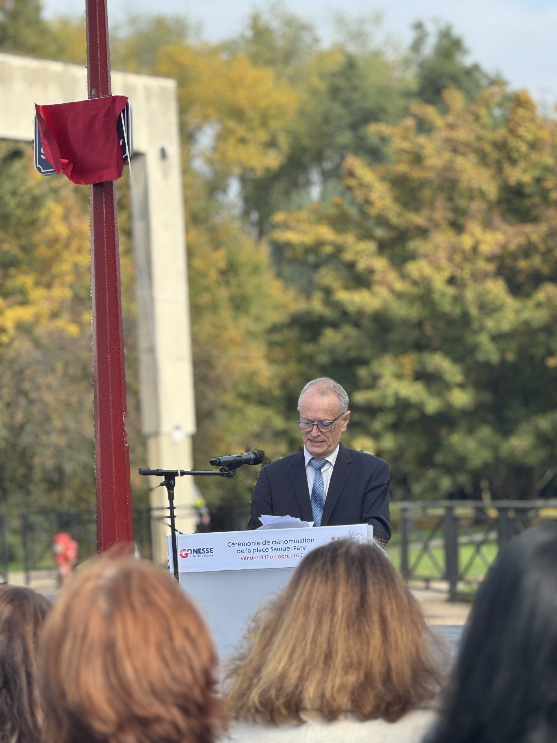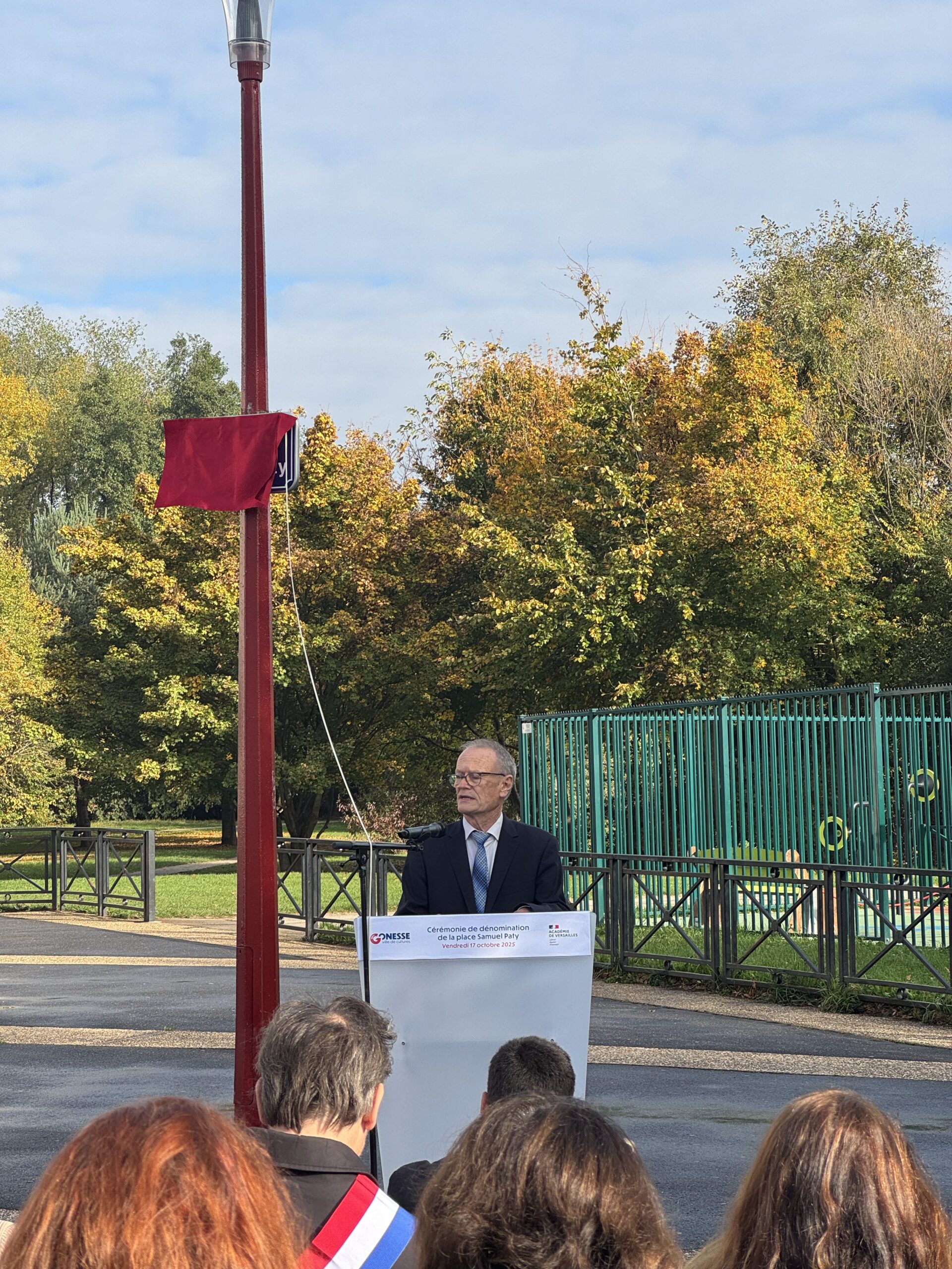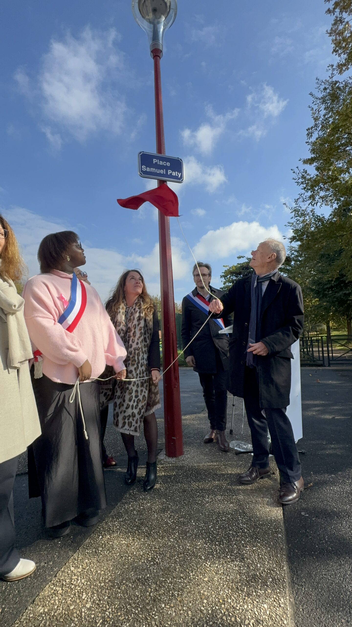 Lors de cette cérémonie empreinte de recueillement, un olivier de la paix a été planté et une plaque commémorative en bronze dévoilée à sa base. Aux côtés du maire Jean-Pierre Blazy, étaient présents Mickaëlle Paty, sœur de Samuel Paty, le député Arnaud Le Gall, Laura Fouchard, inspectrice de l’Éducation nationale, ainsi que les équipes éducatives et les élus municipaux.