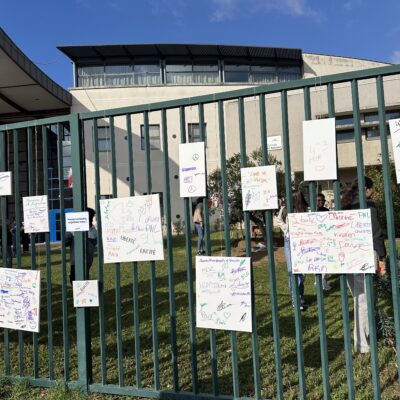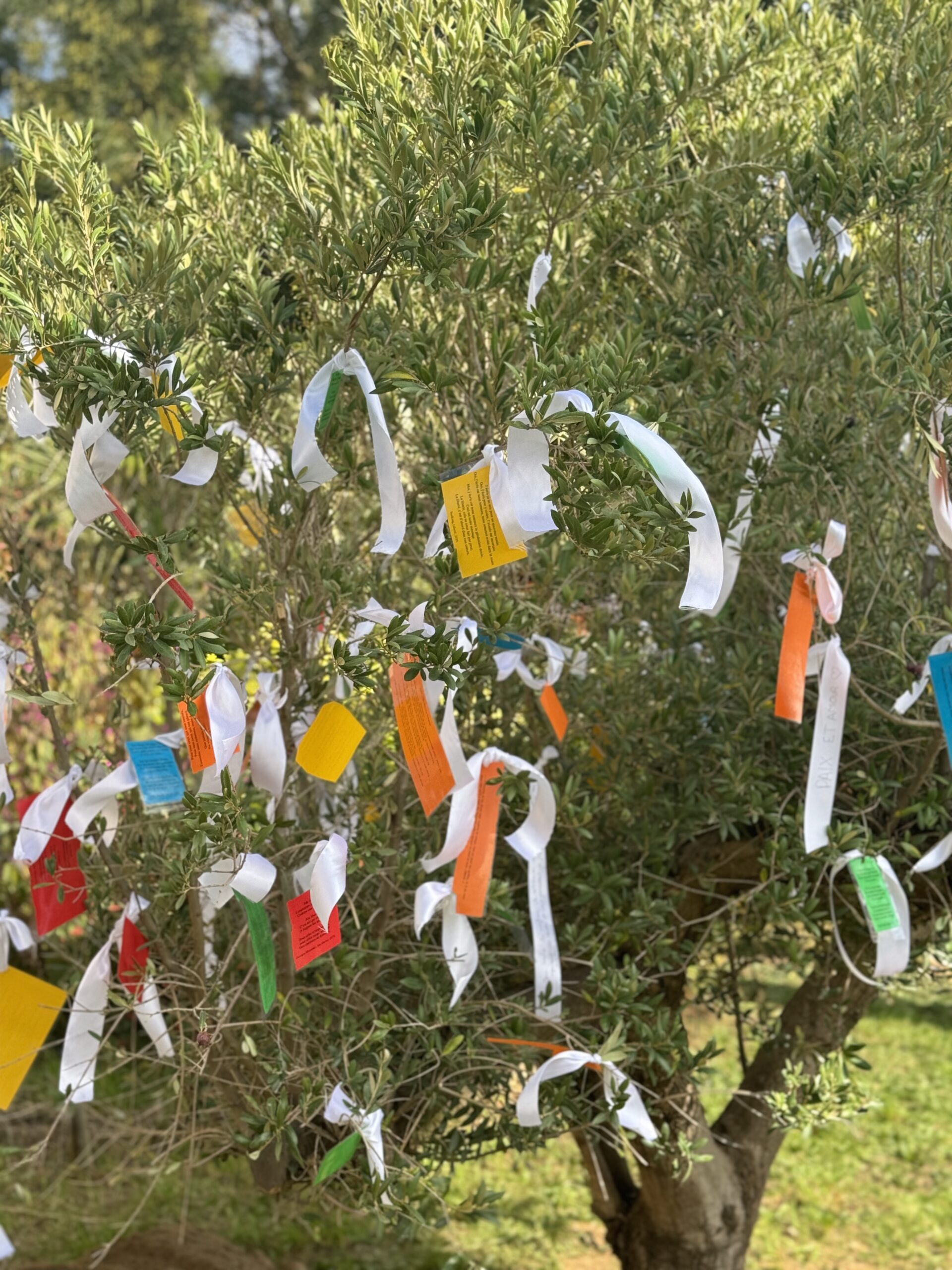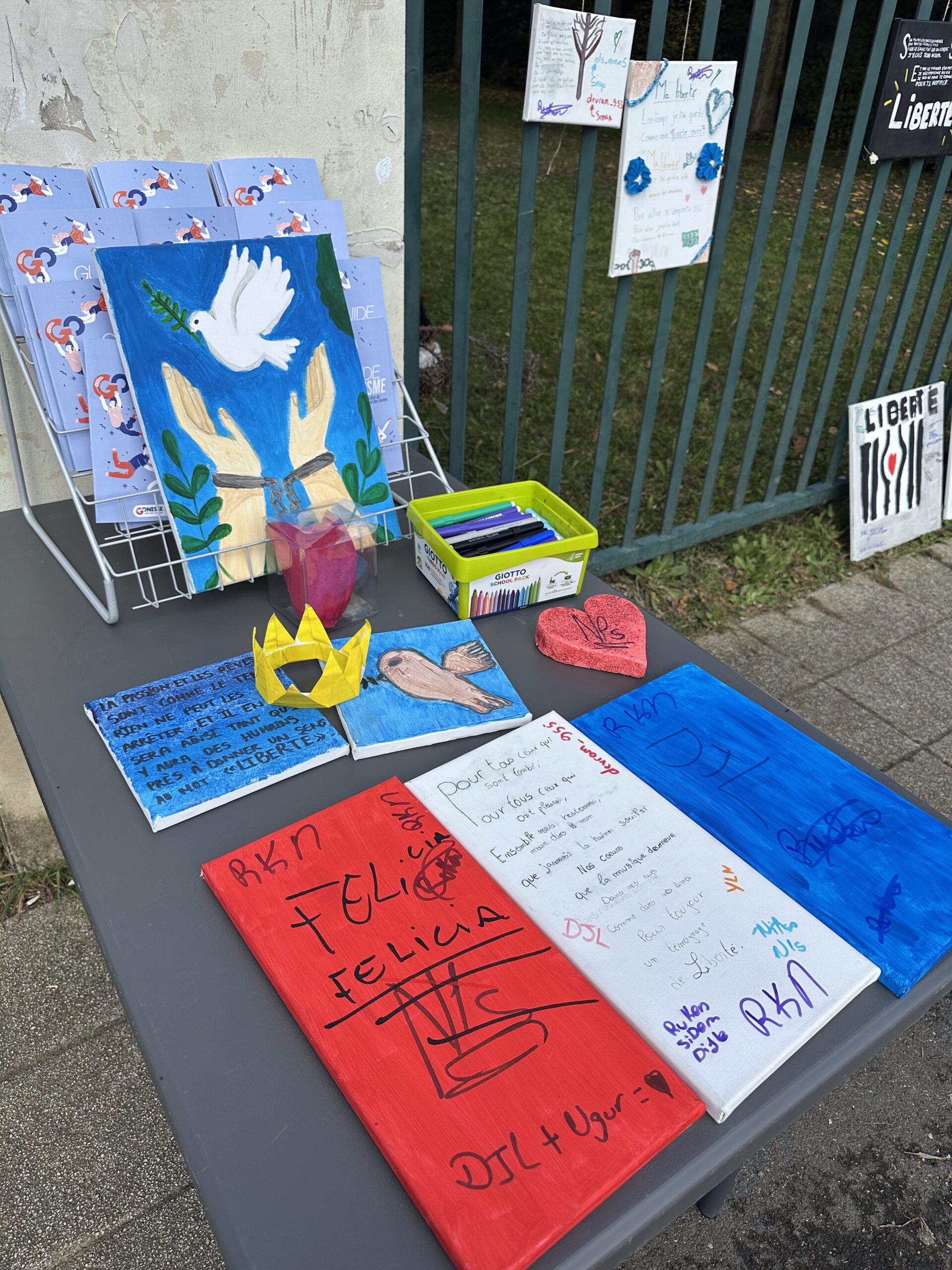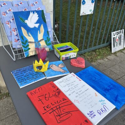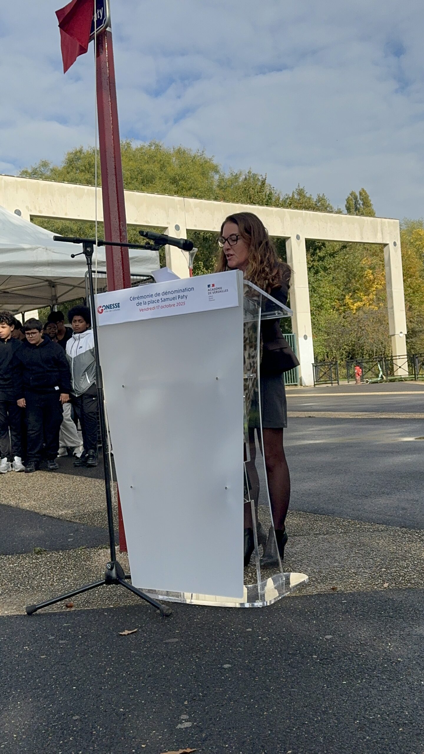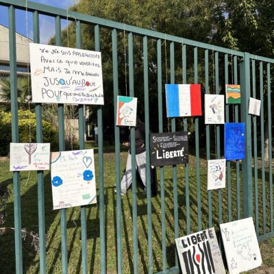 Des ateliers d’expression ont également été proposés aux collégiens : ils ont pu dessiner et écrire des messages de paix et de fraternité sur des toiles, exprimant leurs émotions et leur attachement aux valeurs républicaines. Lors du dépôt des rubans sur l’olivier, Mickaëlle Paty a elle-même noué un ruban porteur d’un message de reconnaissance envers la ville de Gonesse et d’amour pour son frère, dans un geste à la fois intime et profondément symbolique.